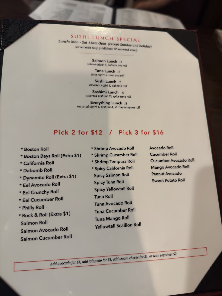 Welcome to Sushi Q Elkridge, a hidden gem located at 6325 Washington Blvd, Elkridge, MD. This spot shines with its fresh sushi offerings and dedicated lunch specials. Perfect for a quick meal, guests can relish delectable options like the 3-roll lunch special at just $16, along with a variety of proteins for side orders, priced conveniently from $6 to $9.