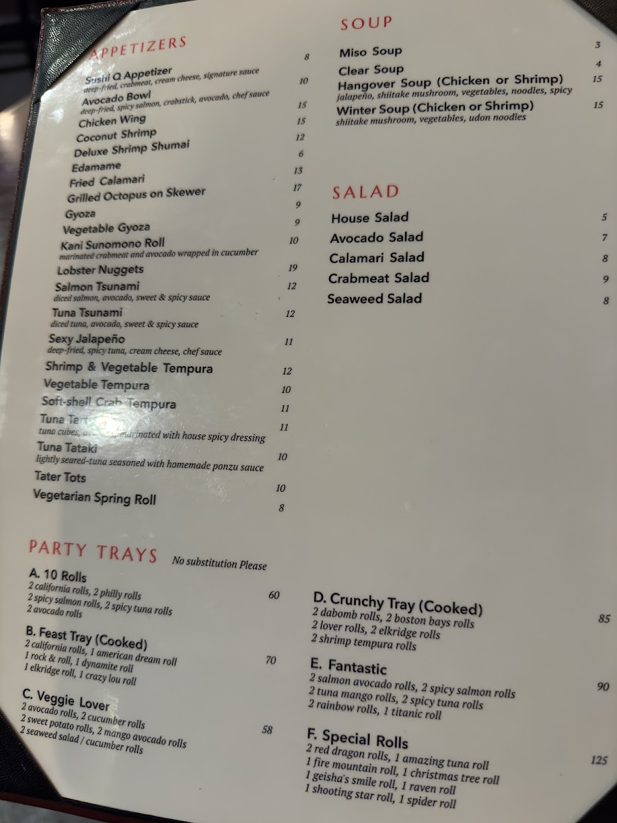 Patrons rave about the flavorful sushi and the generous portions, with reviews highlighting the freshness and quality of the fish. Whether you’re a sushi novice or a seasoned aficionado, the menu offers something for everyone without overwhelming choices. Delight in classic flavors while indulging in sauces like spicy mayo, ensuring a full vista of taste in every bite. With quick service and a welcoming atmosphere, Sushi Q Elkridge is not just a meal, but an experience worth savoring.